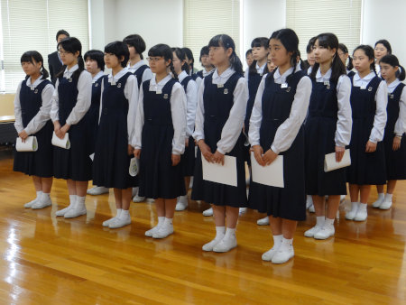 本日、中学校の級長・副級長任命式が行われました。