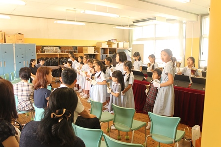そのあとは、子ども大使の児童は雙葉小学校の児童といっしょに授業を受けました。